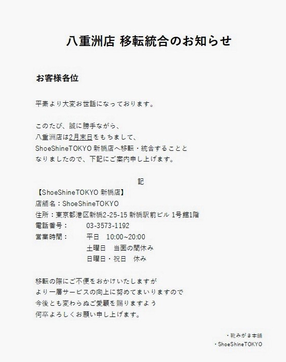 2026/01/09料金改定のお知らせ:2月1日より靴磨き料金が変わります。